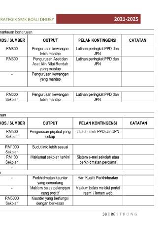 PELAN TINDAKAN T/ JAWAB TEMPOH KOS / SUMBER OUTPUT PELAN KONTINGENSI CATATAN