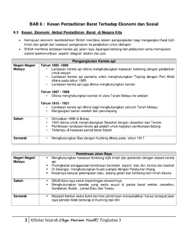 BAB 6 : Kesan Pentadbiran Barat Terhadap Ekonomi dan Sosial