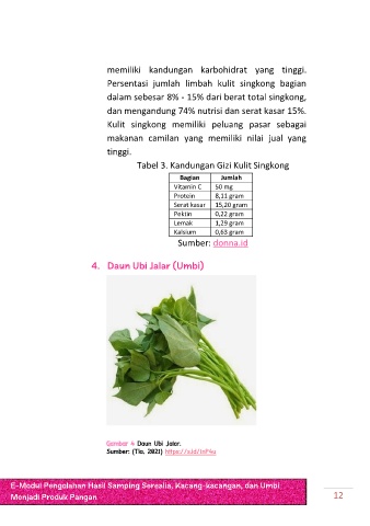 Tabel 3. Kandungan Gizi Kulit Singkong