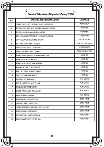 1 YBHG. DATIN SITI NORBAYA BINTI MANSOR PENGETUA