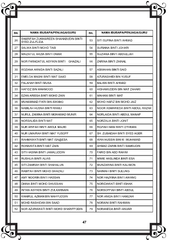 47 AMY NOORIN BINTI HASSAN 74 NOR HAZRINA BINTI AWANG