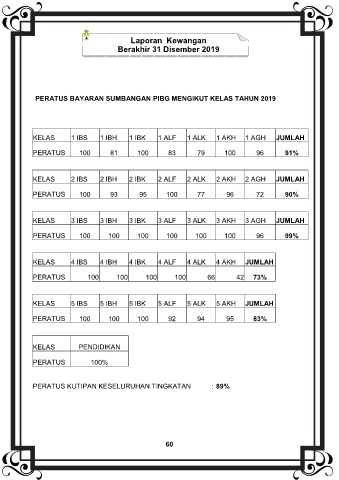 PERATUS KUTIPAN KESELURUHAN TINGKATAN : 89%