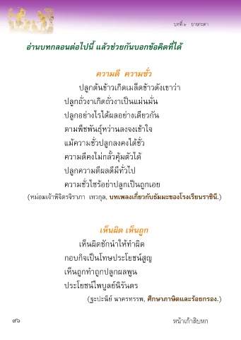อ่านบทกลอนต่อไปนี้ แล้วช่วยกันบอกข้อคิดที่ได้