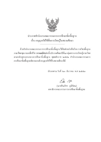 การศึกษาขั้นพื้นฐานพิจารณาแล้วอนุญาตให้ใช้ในสถานศึกษาได้