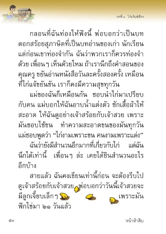 แม่ของฉันก็เหมือนกัน ชอบน�าไก่มาเปรียบ