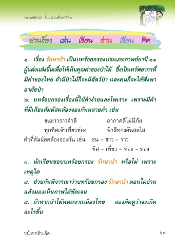 ๔. ช่วยกันพิจารณาว่าบทร้อยกรอง รักษาป่า ตอนใดอ่าน