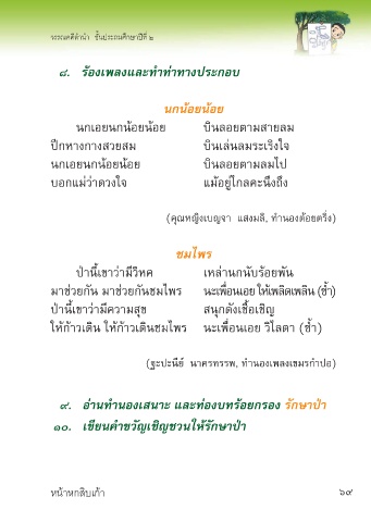 ๙. อ่านท�านองเสนาะ และท่องบทร้อยกรอง รักษาป่า