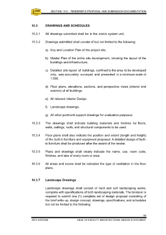 10.3.2 Drawings submitted shall consist of but not limited to the following: