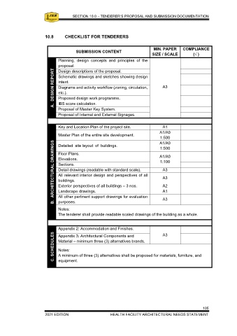 10.7.1 Submission for tender shall consist of the following: SUBMISSION CONTENT SIZE / SCALE (√ )