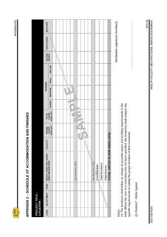 APPENDIX 2 – SCHEDULE OF ACCOMMODATION AND FINISHES