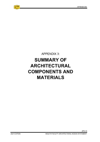 APPENDIX 3 – SUMMARY OF ARCHITECTURAL COMPONENTS AND MATERIALS