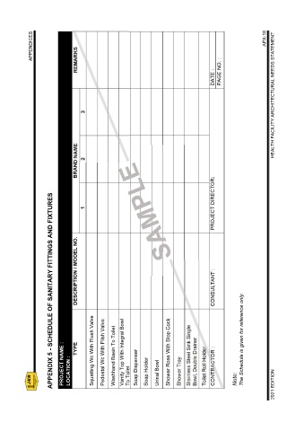 APPENDIX 5 - SCHEDULE OF SANITARY FITTINGS AND FIXTURES