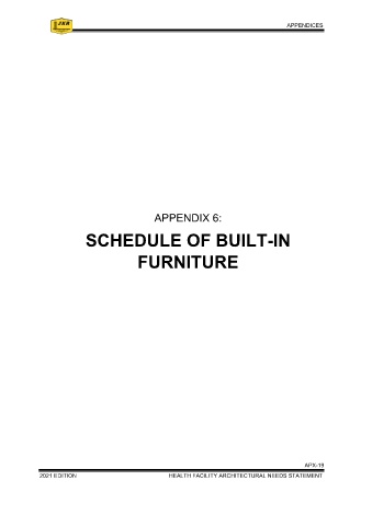 APPENDICES APPENDIX 6: SCHEDULE OF BUILT-IN FURNITURE APX-19 2021 EDITION HEALTH FACILITY ARCHITECTURAL NEEDS STATEMENT