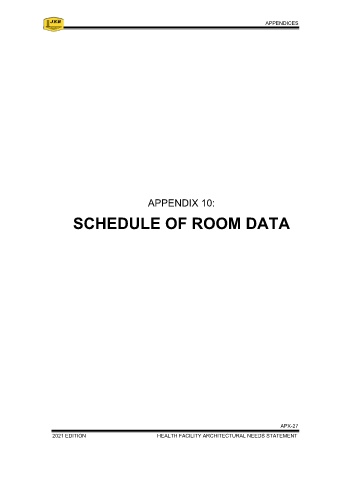 APPENDICES APPENDIX 10: SCHEDULE OF ROOM DATA APX-27 2021 EDITION HEALTH FACILITY ARCHITECTURAL NEEDS STATEMENT
