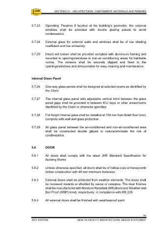 5.7.24 External glass for external walls and windows shall be of low shading 5.8.6 Doors shall not obstruct or encroach into any circulation or movement of