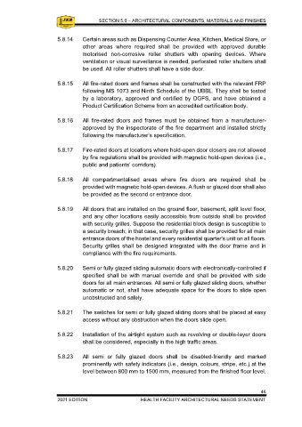 5.8.16 All fire-rated doors and frames must be obtained from a manufacturer- 5.8.26 All doors must open fully and have an open-hold function at clinical areas