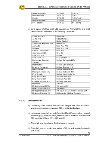 k) Solid Epoxy Worktop shall fulfill requirement ASTM/SIRIM and shall recovery trap. The type of waste trap is to be discussed during the