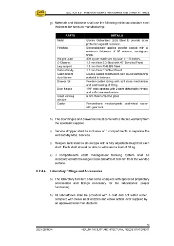 g) Materials and thickness shall use the following minimum standard steel c) All laboratory fittings for gas outlets shall be of the approved suitable