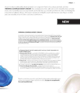 UTIQUE FIRMING COMPLEX BODY CREAM A well-tended and healthy-looking body is an exquisite frame of a unique portrait, and the