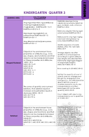 LEARNING AREA: K to 12 Learning MELCs