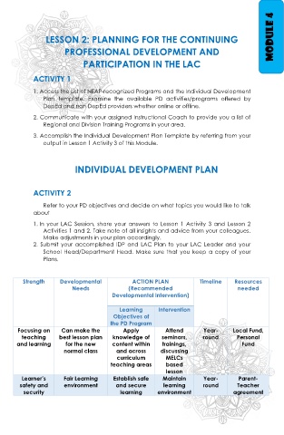 LESSON 2: PLANNING FOR THE CONTINUING
