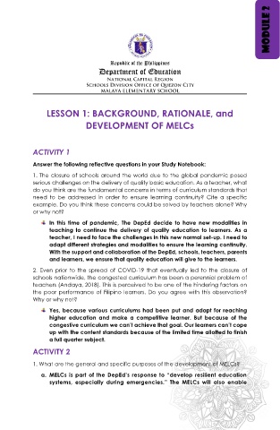 a. MELCs is part of the DepEd’s response to “develop resilient education