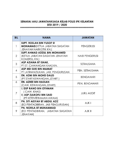 SENARAI AHLI JAWATANKUASA KELAB POLIS IPK KELANTAN
