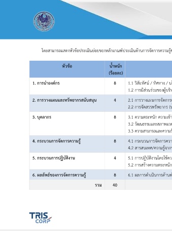 ༛ดยสามารถสดงหัวขຌอประมินยอยของหลักกณฑຏประมินดຌานการจัดการความรูຌของรัฐวิสาหกิจ ༛เดຌดังนีๅ༛