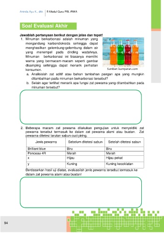 2. Beberapa macam zat pewarna dilakukan pengujian untuk menyeldiki zat
