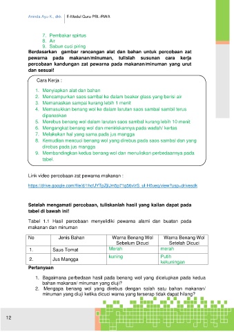 Tabel 1.1 Hasil percobaan menyelidiki pewarna alami dan buatan pada