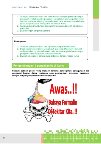 1. Terdapat perbedaan hasil dari hasil uji bakso berpengawet dan tanpa