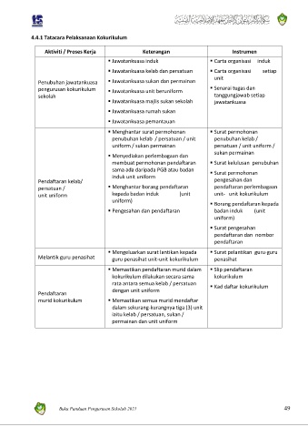 4.4.1 Tatacara Pelaksanaan Kokurikulum