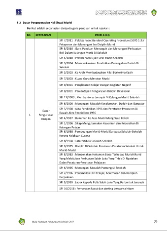 5.2 Dasar Pengoperasian Hal Ehwal Murid
