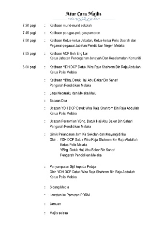 8.00 pagi : Ketibaan YDH DCP Datuk Wira Raja Shahrom Bin Raja Abdullah