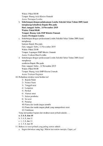 b. Sehubungan dengan pelaksanaan Lomba Sekolah Sehat Tahun 2009, kami