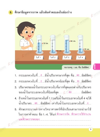 2. กระบอกตวงใบที่ .....................มีนํ้าปริมาตรนอยที่สุด คือ .....................มิลลิลิตร