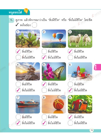 1. ดูภาพ แลวพิจารณาวาเปน “สิ่งมีชีวิต” หรือ “สิ่งไมมีชีวิต” โดยขีด