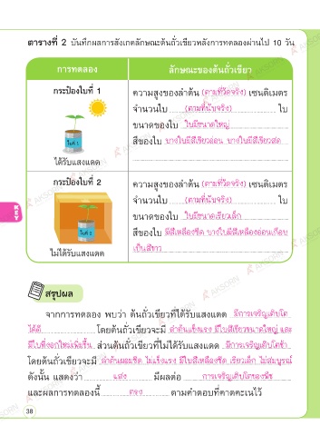 จากการทดลอง พบวา ตนถั่วเขียวที่ไดรับแสงแดด ...........................................................