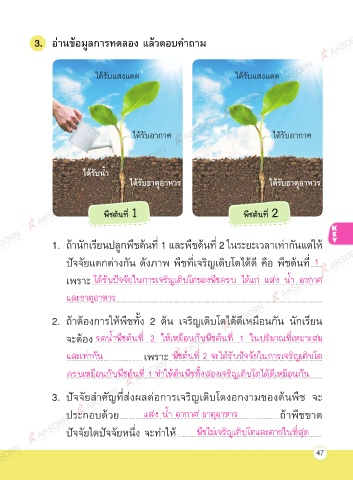 2. ถาตองการใหพืชทั้ง 2 ตน เจริญเติบโตไดดีเหมือนกัน นักเรียน