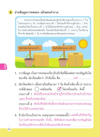 8. อานขอมูลการทดลอง แลวตอบคําถาม