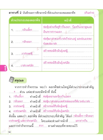 µÒÃÒ§·Õè 2 บันทึกผลการศึกษาหนาที่สวนประกอบของดอกพืช (ตัวอยาง)