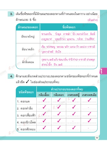 3. เติมชื่อพืชดอกท่มีลักษณะของดอกตามท่กําหนดลงในตาราง อยางนอย