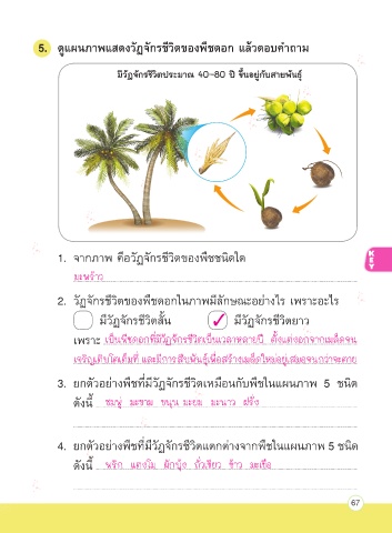 3. ยกตัวอยางพืชท่มีวัฏจักรชีวิตเหมือนกับพืชในแผนภาพ 5 ชนิด