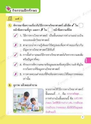 1. พิจารณาขอความเก่ยวกับวิธีการทางวิทยาศาสตร แลวขีด ✓ ใน