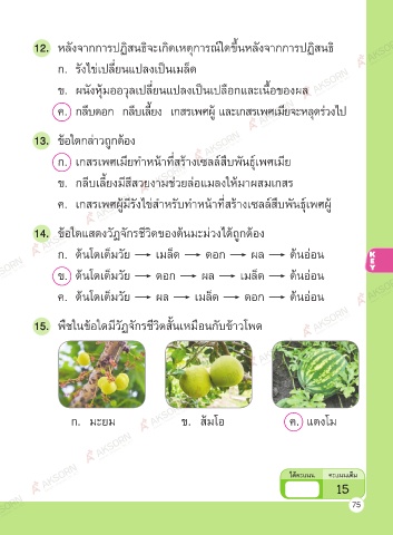 14. ขอใดแสดงวัฏจักรชีวิตของตนมะมวงไดถูกตอง