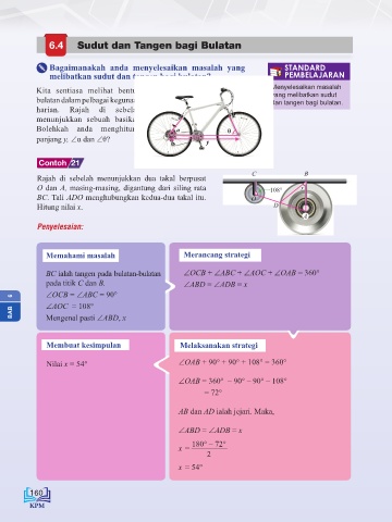 Nilai x = 54° ∠OAB + 90° + 90° + 108° = 360°