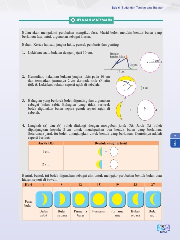 dipanjangkan kepada 2 cm untuk mendapatkan dua bentuk bulan yang berlainan.
