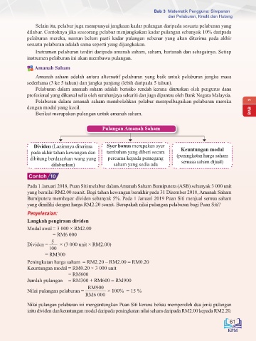 Nilai pulangan pelaburan ini menguntungkan Puan Siti kerana beliau memperoleh dua jenis pulangan