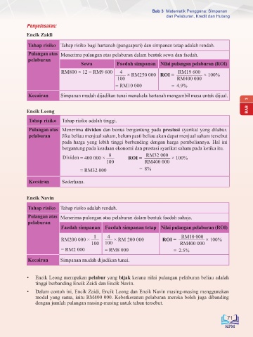 • Encik Leong merupakan pelabur yang bijak kerana nilai pulangan pelaburan beliau adalah