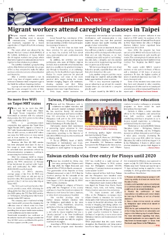 together to find solutions to problems. participants, who were all Filipino migrant the course and is happy learning new things Cardinal Tien Hospital, the MWCD report